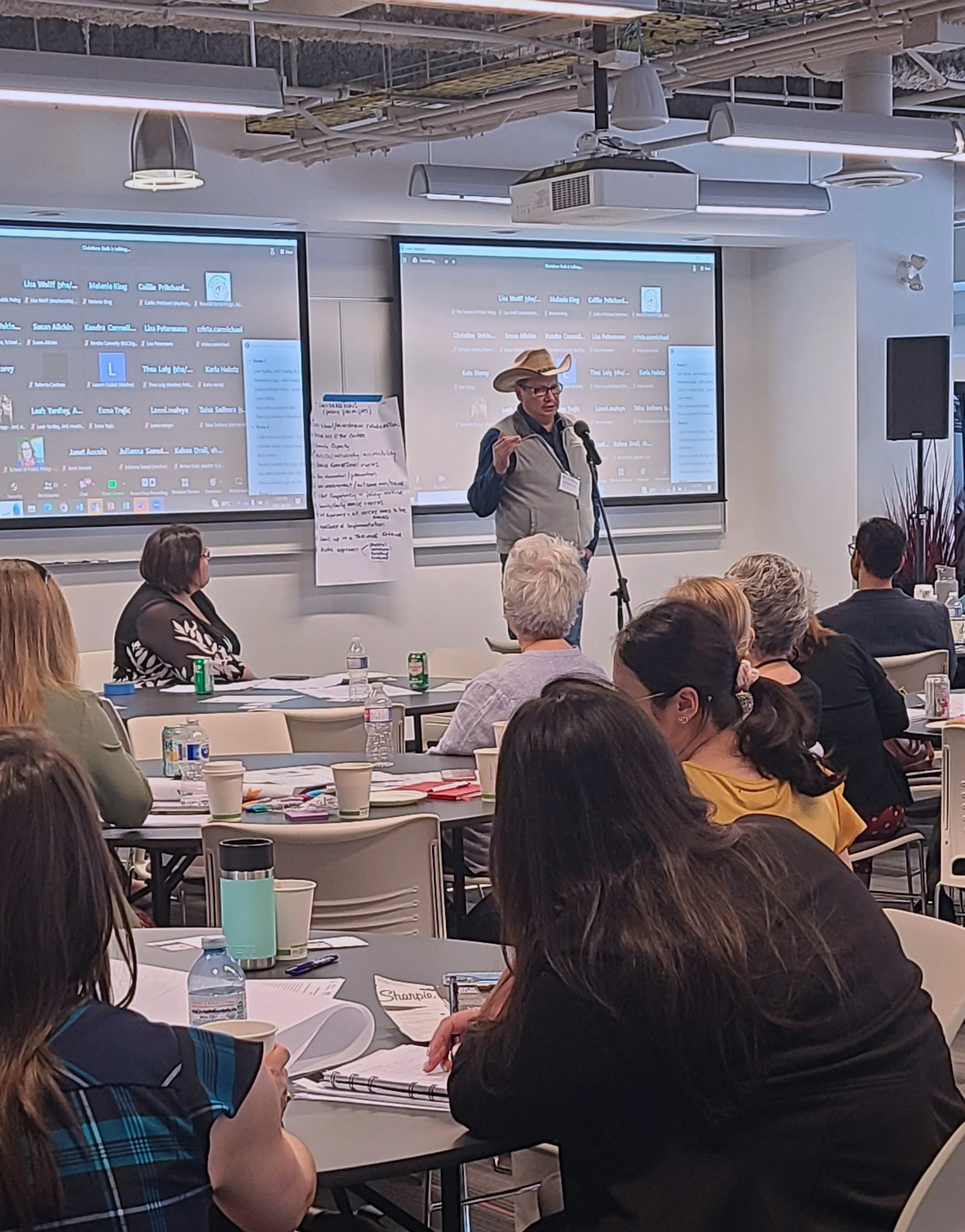 We were honored with Elder Eldon Weasel Child providing an opening ceremony to start the dialogue in a good way and shared his knowledge and give reflections on the important considerations for child health and wellbeing policy. He expressed the importance of compassion and spoke of its significance in Blackfoot culture. We learned that one is not considered a whole person if they lack compassion. Many time, policies lack the compassionate input from people on the ground. Elder Eldon Weasel Child also enlightened many of us about the connection between the Siksika nation and Maslow’s hierarchy of needs; importantly, he highlighted how Maslow neglected to credit the Siksika nation in any of his work. Elder Eldon Weasel Child also urged the audience to be extremely thoughtful when wording and applying policies that include scientific concepts and theories. He made this point by telling the story of a family from his nation who lost custody of their children to a white foster family due to the way in which attachment theory was used to their advantage. His words touched the audience deeply and provided the needed context and meaning for the event.